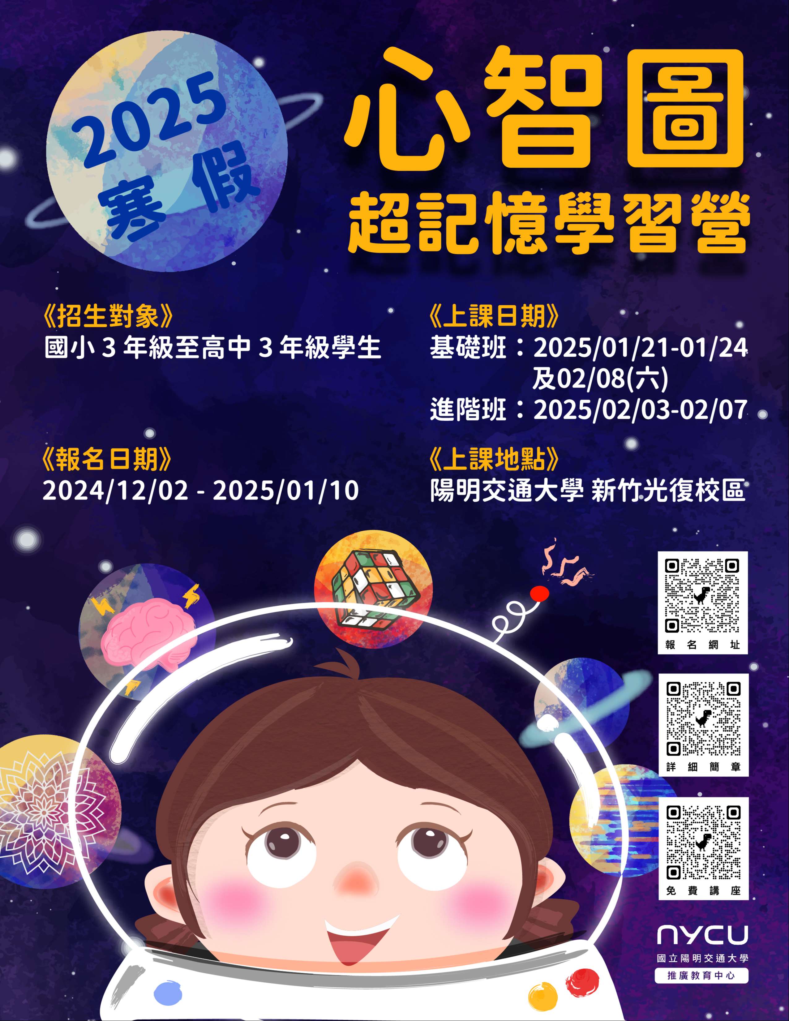 國立陽明交通大學推廣教育中心辦理「心智圖超記憶親子免費講座」及「2025寒假-心智圖超記憶學習營