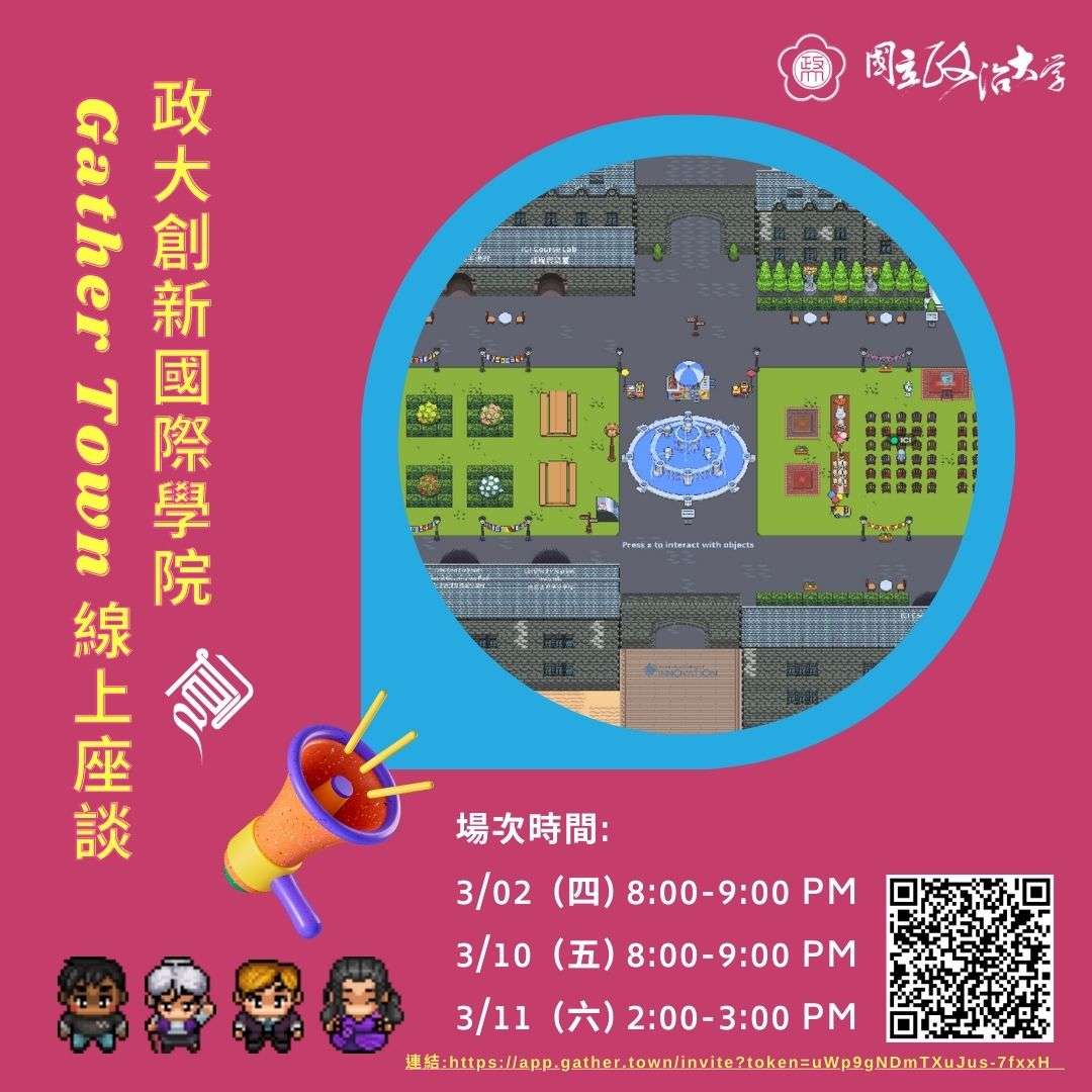 | 主旨: | 本校創新國際學院「2023年Gather Town 與高中生線上座談」活動,竭誠歡迎貴校師生參加,敬請查照轉知。 |