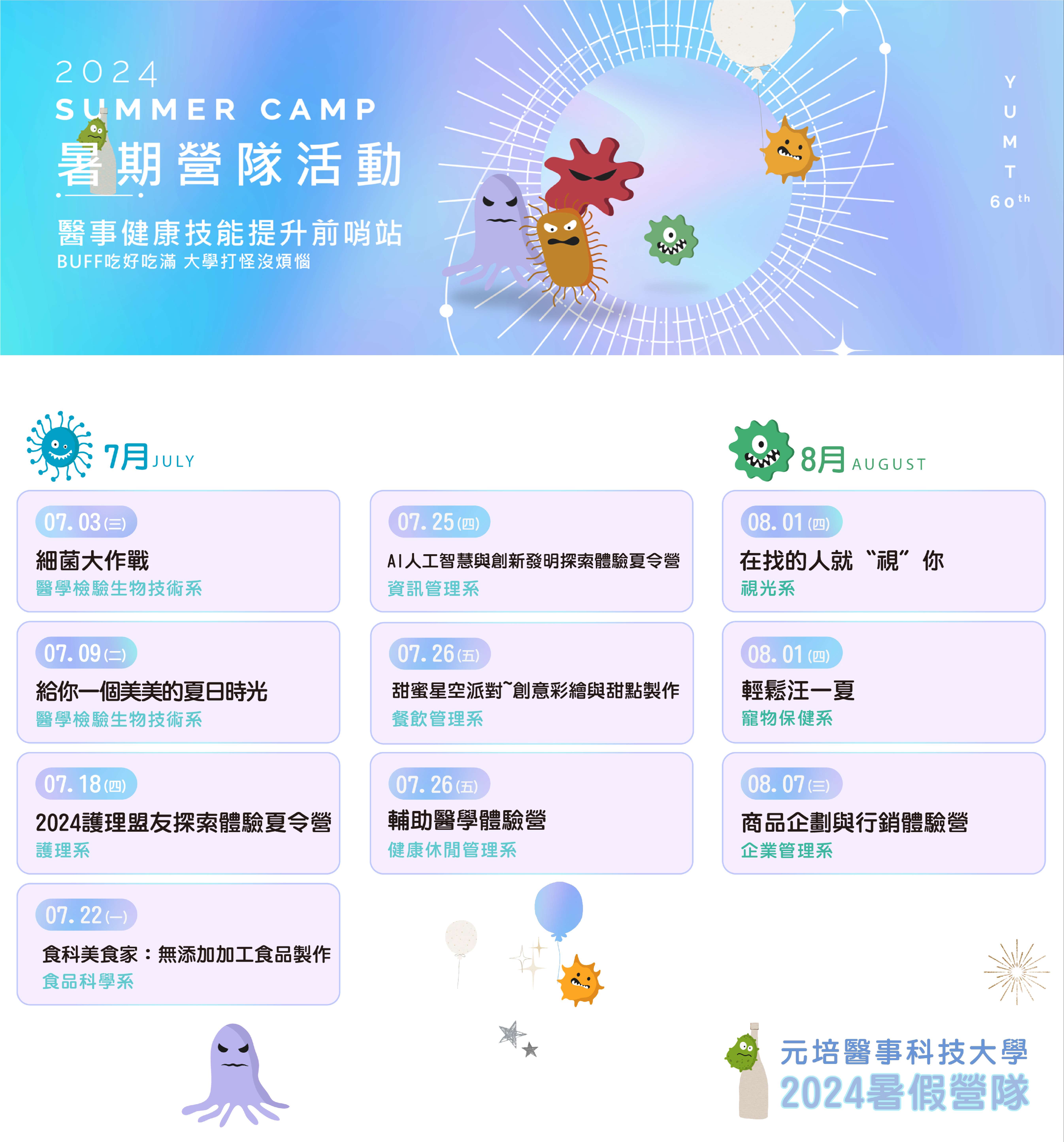 | 一、 | 為協助高中職學生探索大學生涯發展,本校特辦理2024暑假營隊活動。 |
